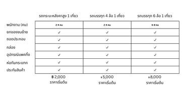 แพ็กเกจราคาและประเภทรถสำหรับการขนย้าย